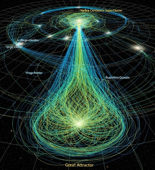 은하의 흐름을 시각화하면, 각 은하가 보이지 않는 거대한 중력 우물에 빨려 들어가는 듯한 패턴을 보인다. 이는 우주 전체에서 중력의 역할이 얼마나 지배적인지 보여주는 강력한 증거다.