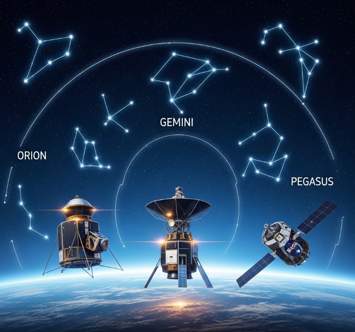 | 연도 | 우주선/프로젝트명 | 별자리 이름 유래 | 임무 목적 | 상징성 및 비하인드 스토리 |
