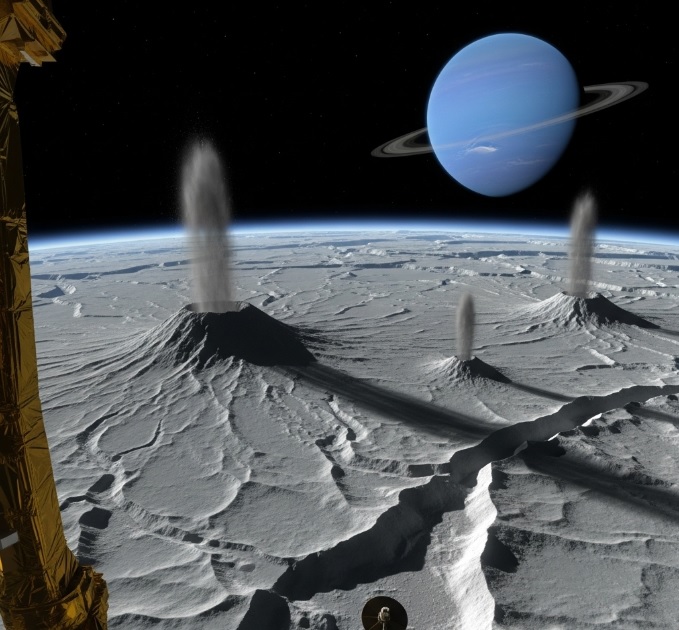 1989년 보이저 2호는 트리톤을 40,000km 거리에서 촬영하며, 질소 간헐천, 매끄러운 평원, 얼음층, 그리고 복잡한 표면 무늬를 기록했다. 이는 트리톤이 단순히 얼어붙은 위성이 아니라 현재도 활동적인 세계임을 보여주는 결정적 증거였다.