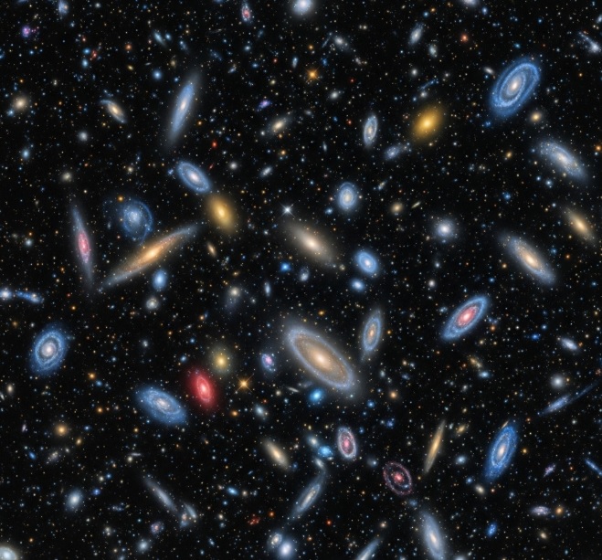 사진 속에는 예상과 달리 3천 개가 넘는 희미한 은하들이 담겨 있었습니다. 이전까지 천문학자들은 은하의 수가 많아도 수백억 개쯤일 것이라고 생각했습니다. 허블 딥필드 한 장으로 인류는 우주에 존재하는 은하가 1조 개에 이를 수 있다는 사실을 확인할 수 있었습니다.