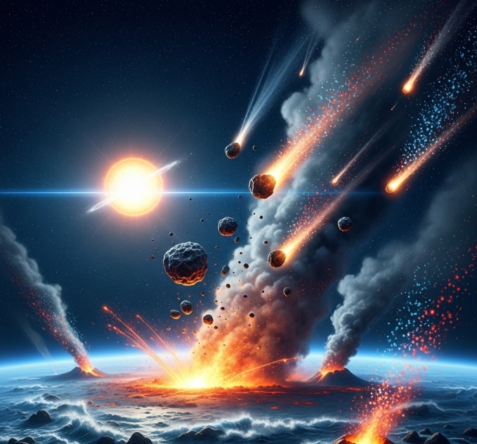 지구의 고대 암석과 달 표면에는 과거 충돌의 흔적이 보존되어 있다. 후기 대폭격기 시기의 충돌 분화구 분포는 당시 소행성과 혜성의 충돌이 매우 빈번했음을 보여준다.