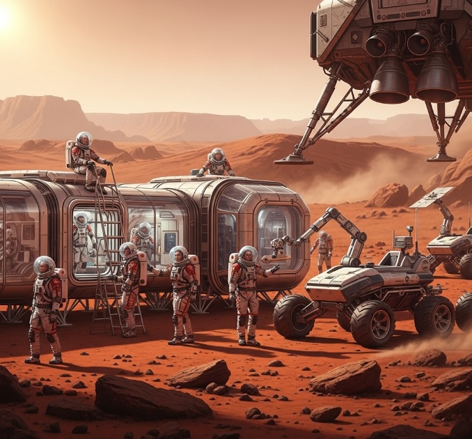 착륙 후에는 이동 수단, 표면 탐사 장비, 과학 기지를 설치해야 하며, 이는 장기 거주와 탐사에 필수입니다.